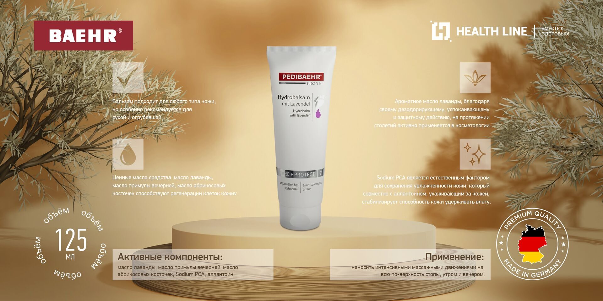 Гидробальзам с маслом лаванды специально создан для ухода за диабетической стопой. Лёгкая текстура глубоко увлажняет и смягчает кожу, предотвращает трещины и раздражения, а натуральные масла лаванды, абрикоса и ослинника обеспечивают заботу о здоровье и комфорте стоп. Бальзам способствует восстановлению мягкости и эластичности кожи, поддерживая ощущение свежести и лёгкости на весь день.